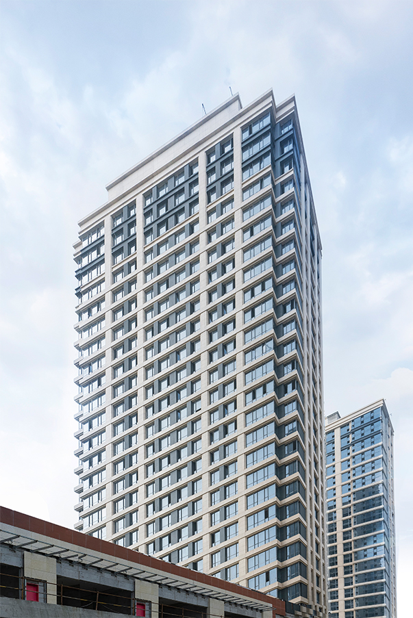 辦公區(qū)沿基地西側(cè)布置,靠近基地西側(cè)的大型景觀公園,使整個建筑群最大程度的享受到城市中央景觀,辦公區(qū)相對獨立,同時底層架空綠化與商業(yè)街區(qū)流線分開,提升了辦公的品質(zhì)。