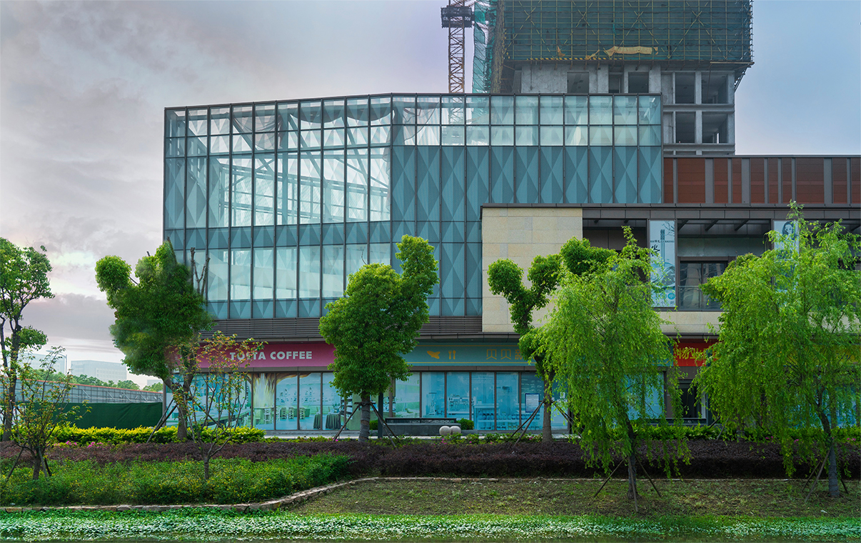 本項目地處上海松江區(qū),地塊緊鄰商務區(qū)生態(tài)綠核。項目規(guī)劃注重環(huán)境的整體性,試圖與場地形成良好的對話。在場地特征上要求各功能的安排能完整有效的表達地塊對于城市界面的梳理和尊重。