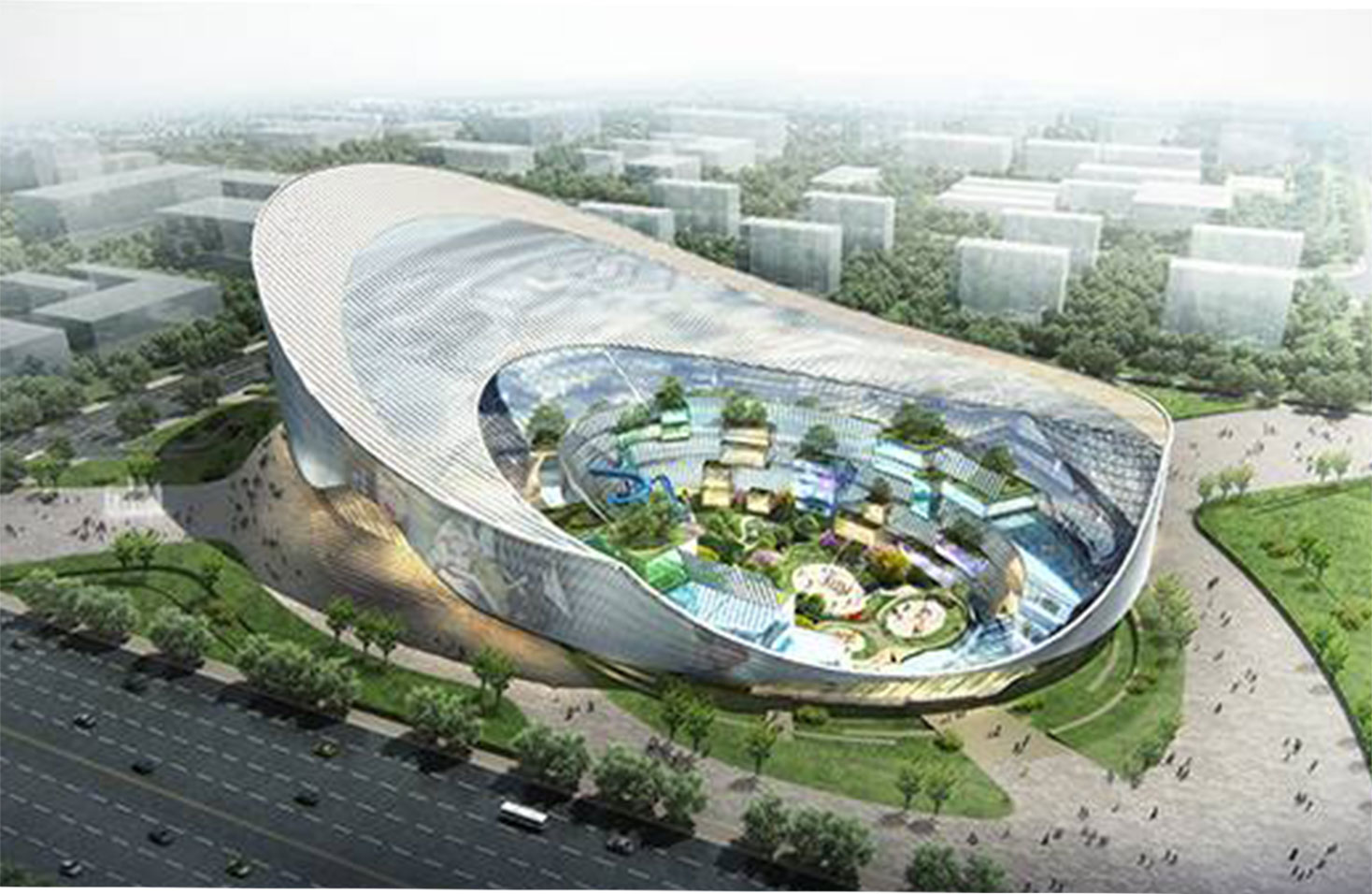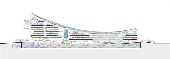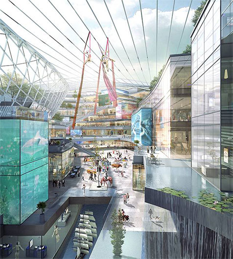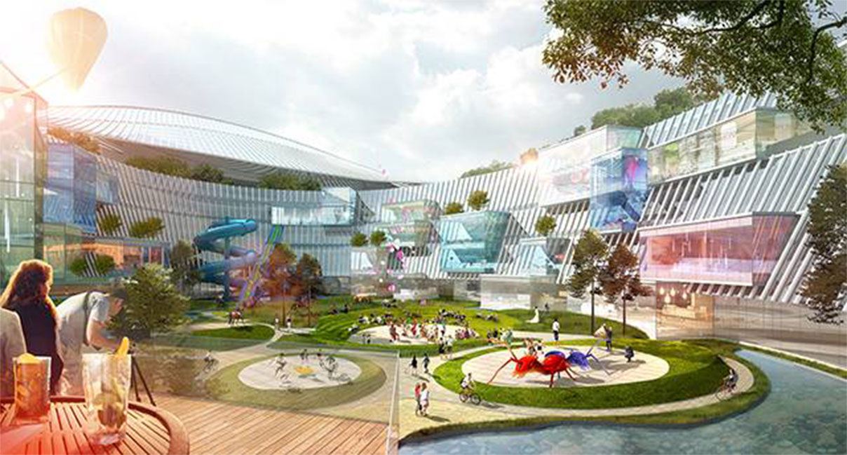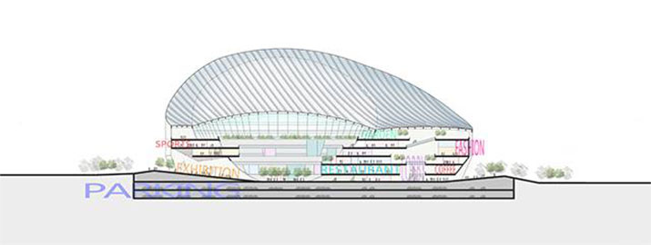 我們的靈感來源于體育場館建筑原型,意圖用超級碗的建筑形式來解決商業(yè)綜合體面臨的諸多城市問題。