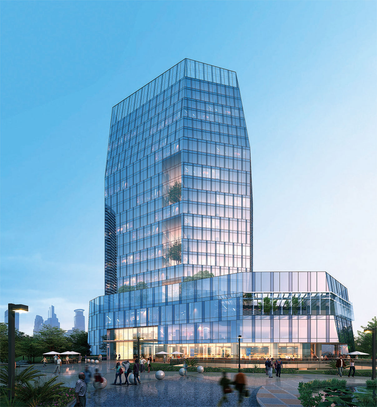 世紀互聯(lián)總部大樓由于其高度、位置以及功能的需要,既要突出標志性,又要和整個園區(qū)保持和諧?;趫@區(qū)統(tǒng)一的立面設計原則,我們適當調整了高層塔樓的平面形式,使其更加簡潔大氣,自然而然從建筑群中凸顯出來。