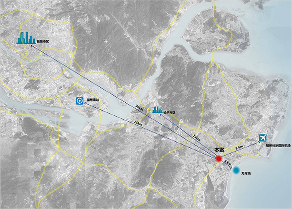 福州市長(zhǎng)樂區(qū)作為福州市的門戶,面積約為658 平方公里。項(xiàng)目基地位于長(zhǎng)樂區(qū)文松路以西,沙壺路以北,距機(jī)場(chǎng)約10 公里車程。南部有東湖VR 小鎮(zhèn),吸引人群消費(fèi),示范區(qū)北側(cè)規(guī)劃為商業(yè)區(qū), 大大的提高基礎(chǔ)生活服務(wù)。