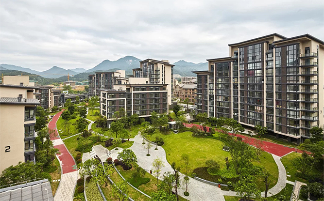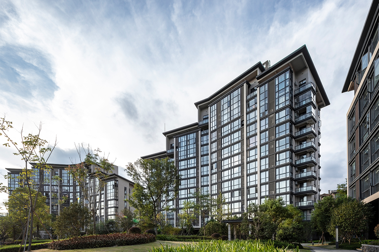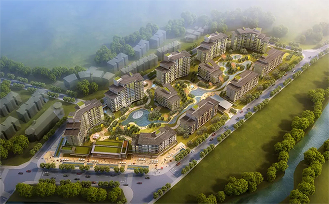 秉承新亞洲建筑風格特點,項目建筑單體形體簡潔大方,縱向關(guān)系非傳統(tǒng)的三段式分割。比例適度的基座內(nèi)收處理,中間形體外擴,凸顯新亞洲風格特點。 建筑群體通過層層的退臺形成起伏的天際線變化與遠處山景呼應。建筑設計突出建筑形體的簡潔明快,同時,加上精致的構(gòu)件加以點綴,體現(xiàn)建筑的優(yōu)雅感與精致感。建筑材料采用磚、木、石、水泥、鋼、玻璃六種材料組合,打造質(zhì)樸、自然的建筑風格,強調(diào)保持材料本色,給建筑帶來了一種自然的美。